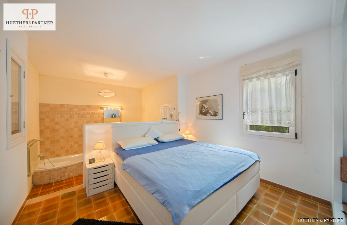 Die Finca bietet auch drei separate Gästeappartements, jeweils mit Schlafzimmer, Bad und teilweise mit Küchenzeile und Wohnbereich. Eine Garage, Pferdekoppel und Stall sowie eine Außenküche und ein Sitzbereich mit TV runden das Angebot ab. Das Anwesen ist von einem mediterranen Garten umgeben und bietet viel Privatsphäre.