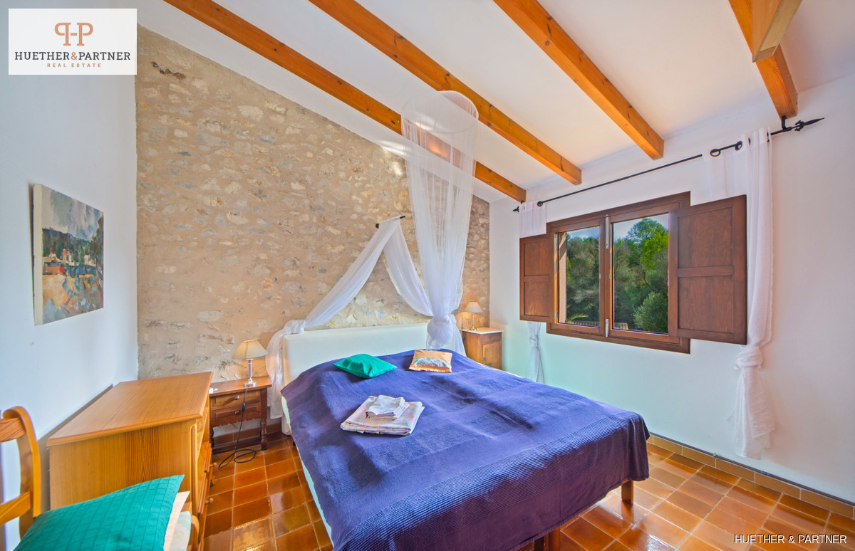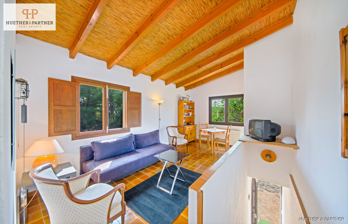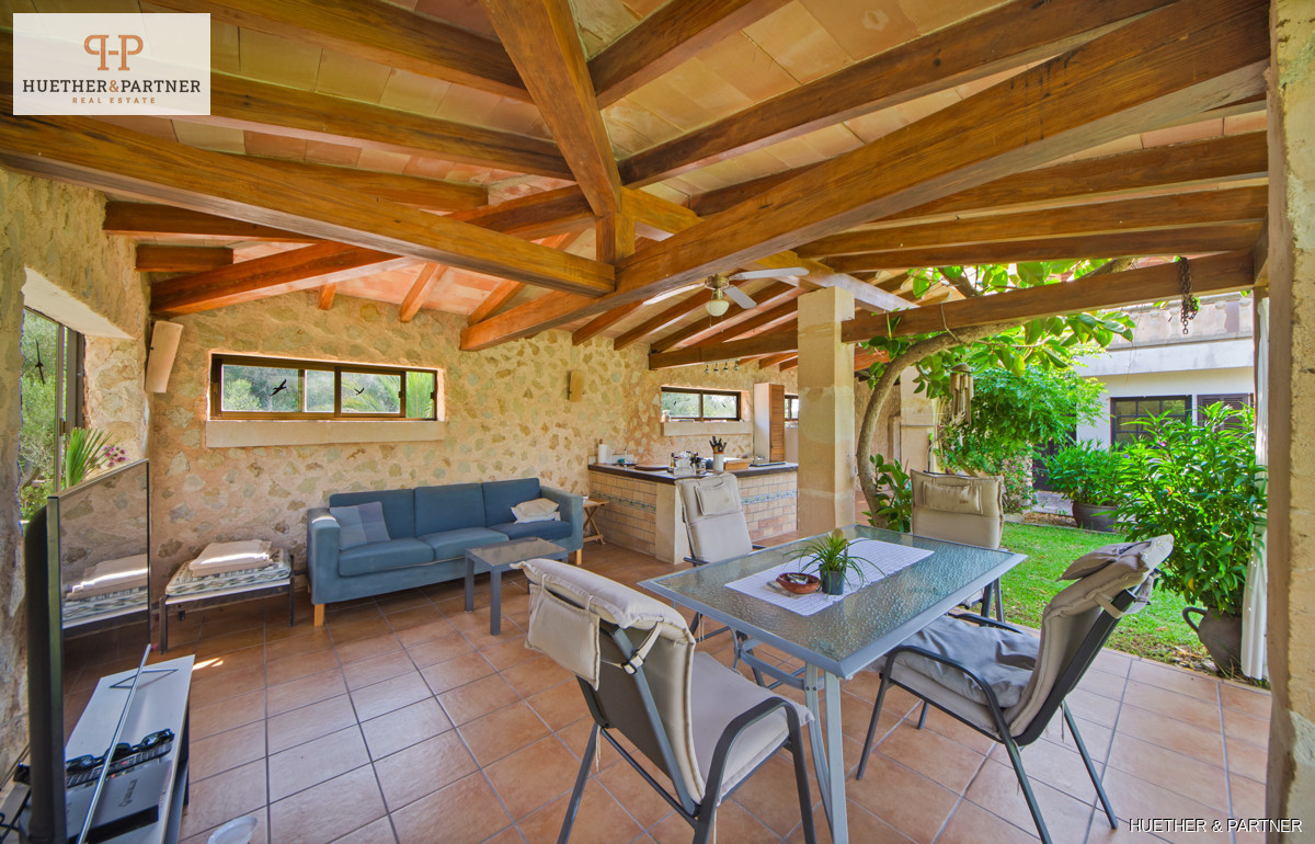 Diese charmante Finca in Son Macià bietet eine Vielzahl von Annehmlichkeiten für ein komfortables Leben. Das Hauptgebäude, das Mitte des 19. Jahrhunderts erbaut wurde, verfügt über einen Wohnbereich mit offenem Kamin, eine Küche mit angrenzendem Essbereich und drei Schlafzimmer. Zwei der Schlafzimmer werden derzeit als Arbeits- und Ankleidezimmer genutzt. Der Master-Bedroom hat ein integriertes Badezimmer und es gibt ein zusätzliches separates Duschbad. Die Veranda führt in den Garten und zum Pool, ideal für entspannte Tage im Freien.