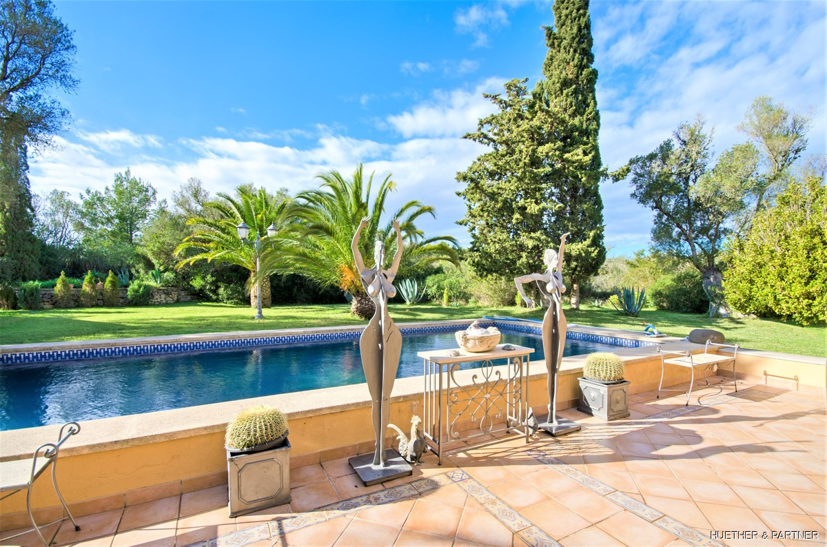 Diese exklusive Finca in Artà beeindruckt durch ihre großzügige Gestaltung und hochwertige Ausstattung. Der parkähnliche Garten führt zum Eingang, wo eine imposante Eingangshalle mit einem übergroßen Gobelin aufwartet. Die Freitreppe leitet zur ersten Etage mit zwei luxuriösen Schlafsuiten, die jeweils über Arbeits-/Wohn- und Schlafbereich sowie moderne Badezimmer verfügen. Ein Highlight ist die freistehende Badewanne im historischen Stil. Das Erdgeschoss bietet ein elegantes Wohn-/Esszimmer mit Kamin und eine moderne Landhausküche, ebenfalls mit Kamin, die sich zum Patio öffnen.