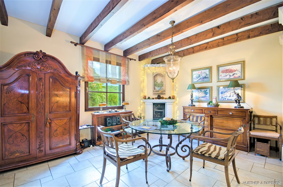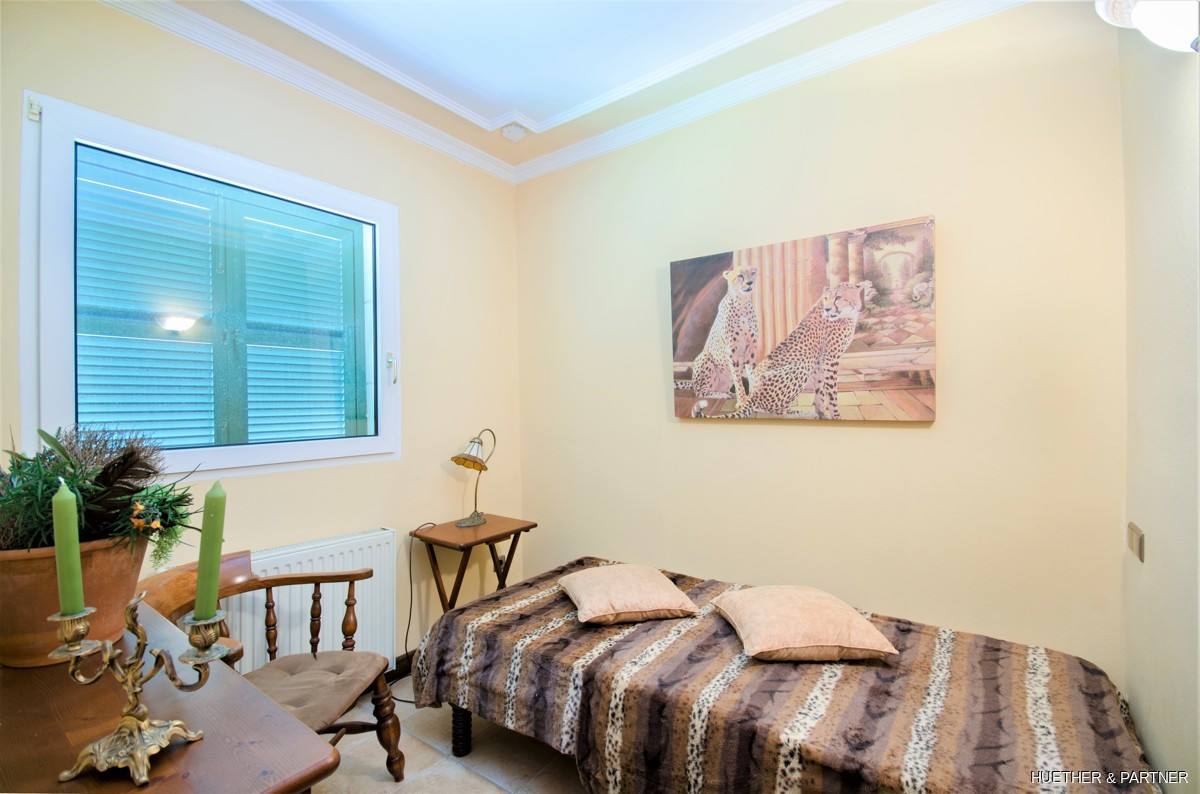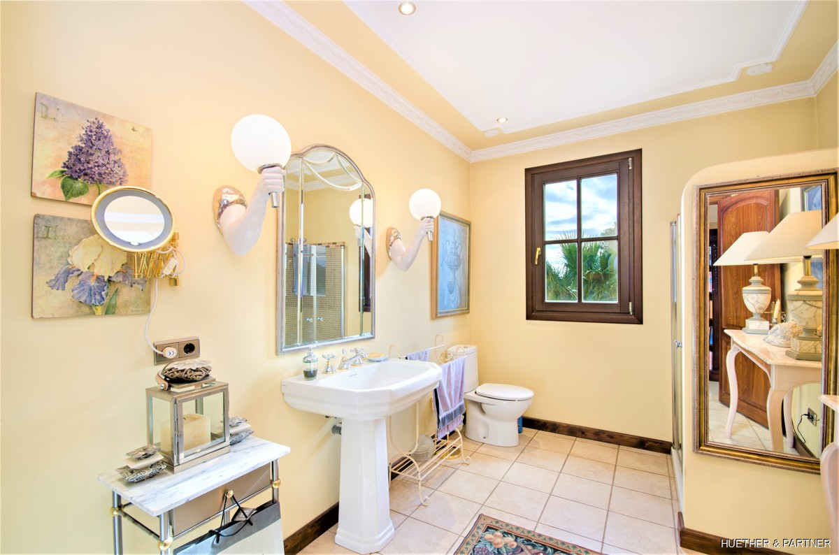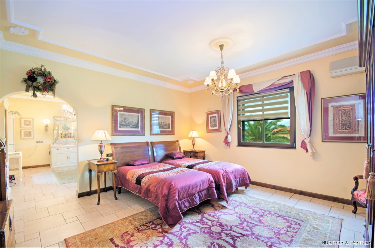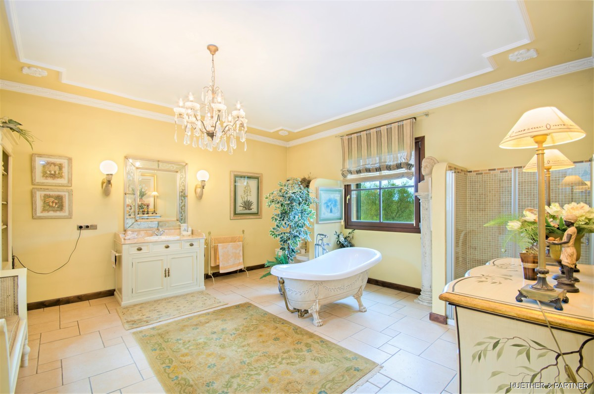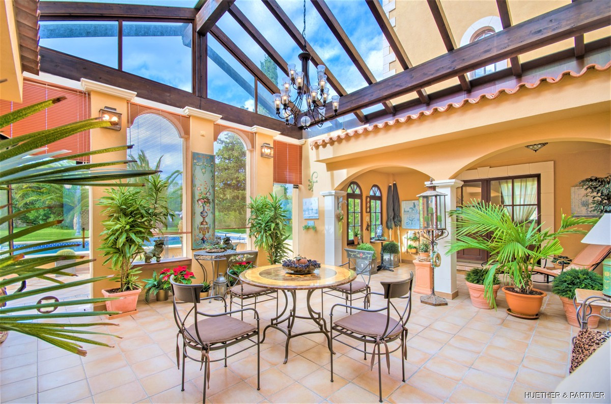 Der Patio ist mit einem Glasdach versehen und bietet einen Wintergarten mit Blick auf den 10 x 5 m großen Pool. Rund um den Pool gibt es verschiedene Terrassen und einen Pavillon. Weiterhin gibt es eine separate Bodega, einen Tennisplatz, ein Gästehaus und eine Doppelgarage mit Heizungsraum. Alle Fenster und Türen sind maßgefertigt und doppelt verglast. Die Finca ist voll klimatisiert und mit Zentral- sowie Fußbodenheizung ausgestattet - ein Haus der Extraklasse!