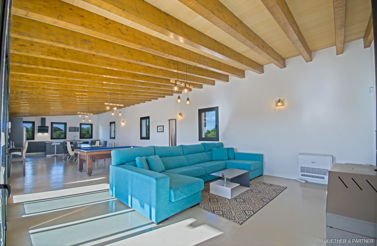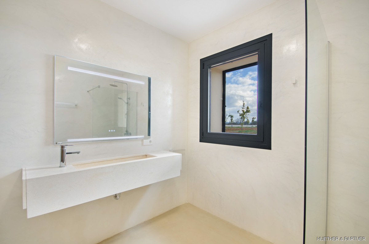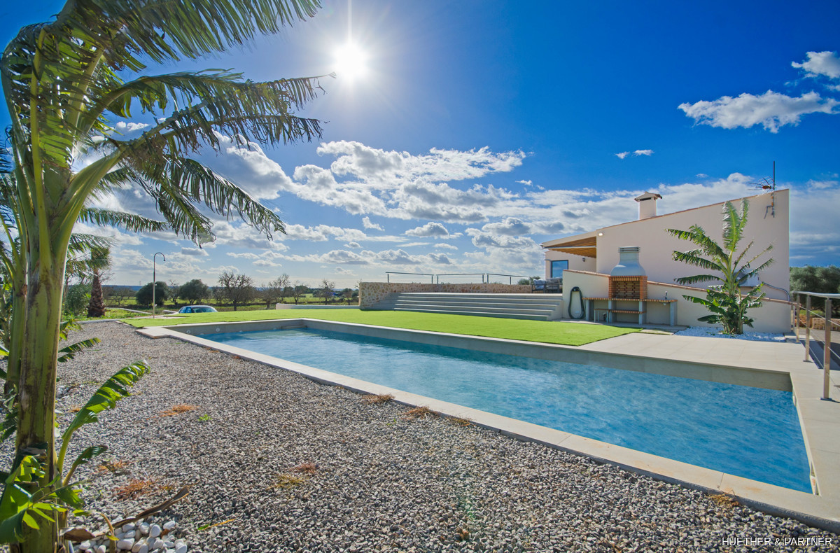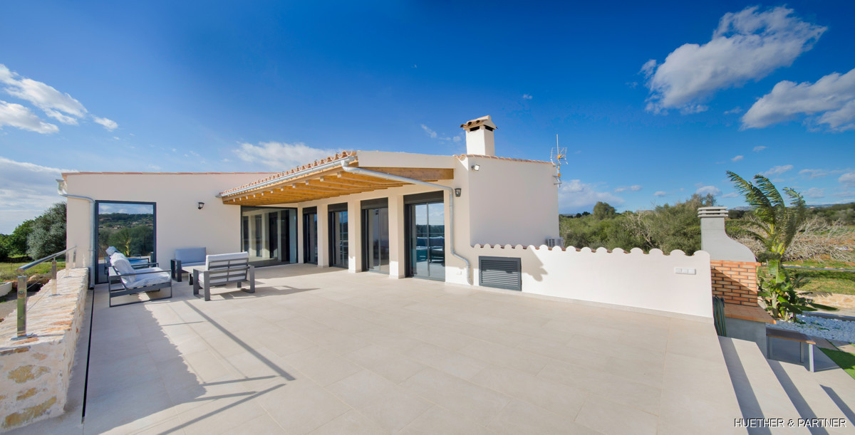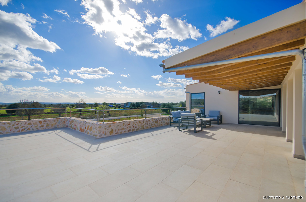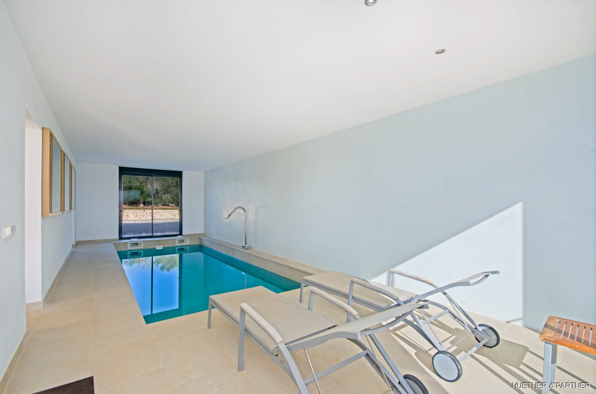 Das Haus ist mit Fußbodenheizung, automatischen Jalousien, Sonnenkollektoren und einem eigenen Brunnen ausgestattet. Panoramafenster bieten einen atemberaubenden Ausblick bis hin zu Sant Salvador bei Felanitx. Der Außenpool mit integriertem Whirlpool und die großzügige Sonnenterrasse runden das luxuriöse Angebot ab.