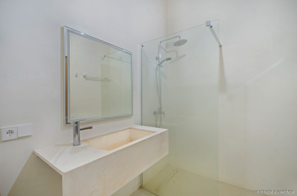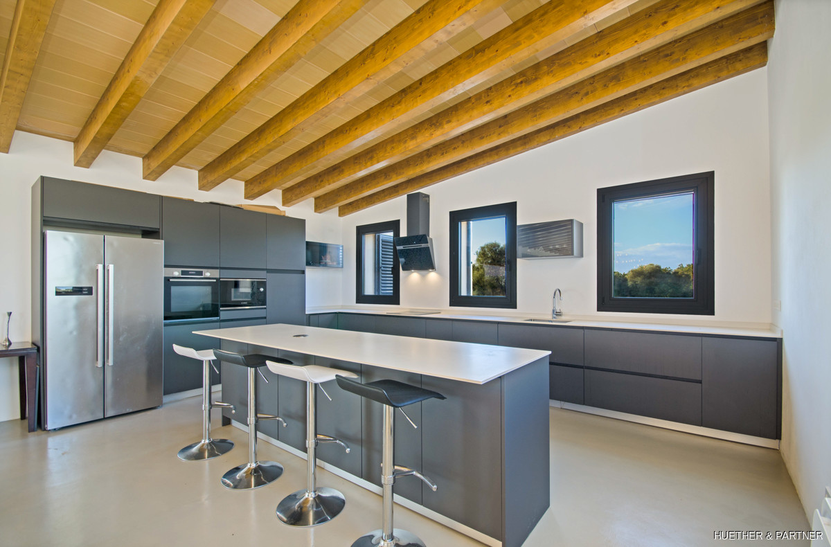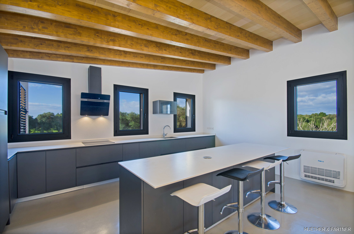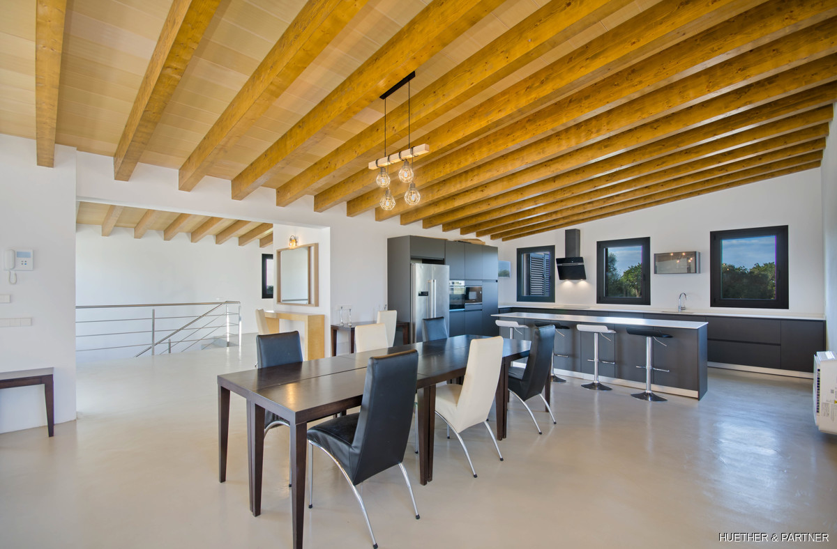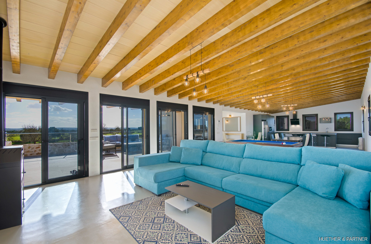Das Haus ist mit Fußbodenheizung, automatischen Jalousien, Sonnenkollektoren und einem eigenen Brunnen ausgestattet. Panoramafenster bieten einen atemberaubenden Ausblick bis hin zu Sant Salvador bei Felanitx. Der Außenpool mit integriertem Whirlpool und die großzügige Sonnenterrasse runden das luxuriöse Angebot ab.
