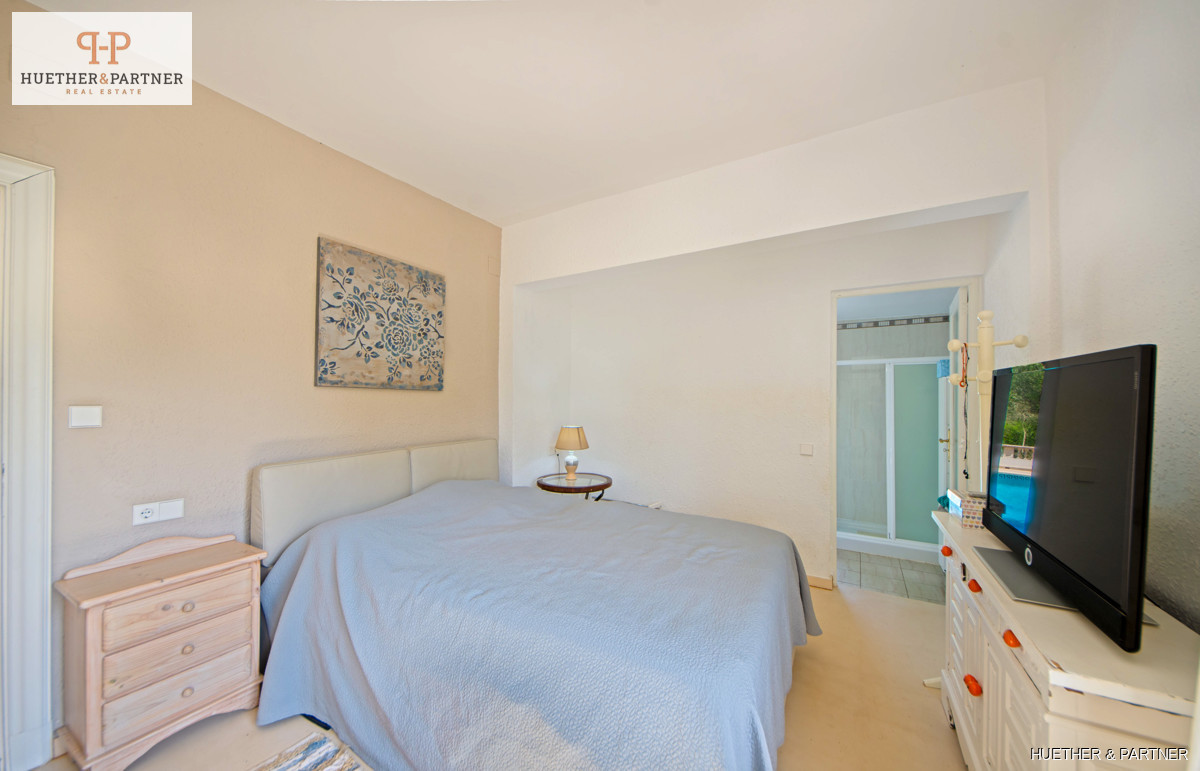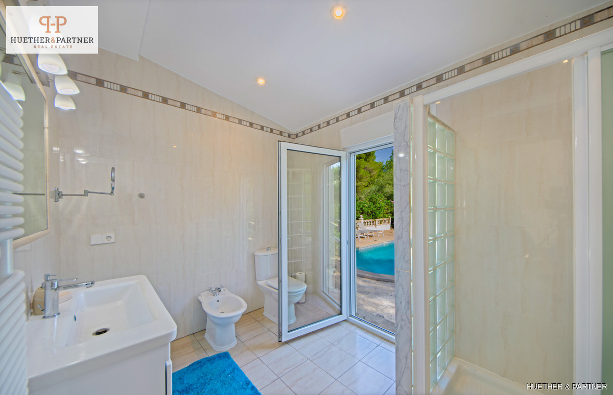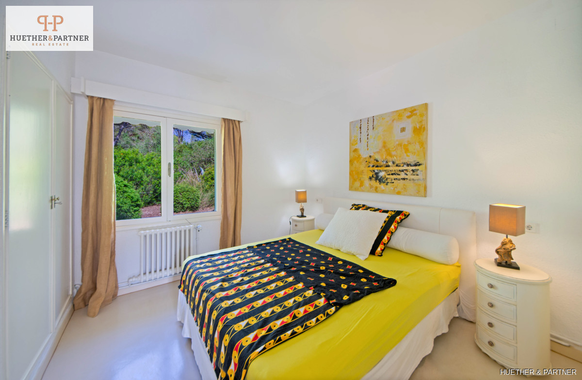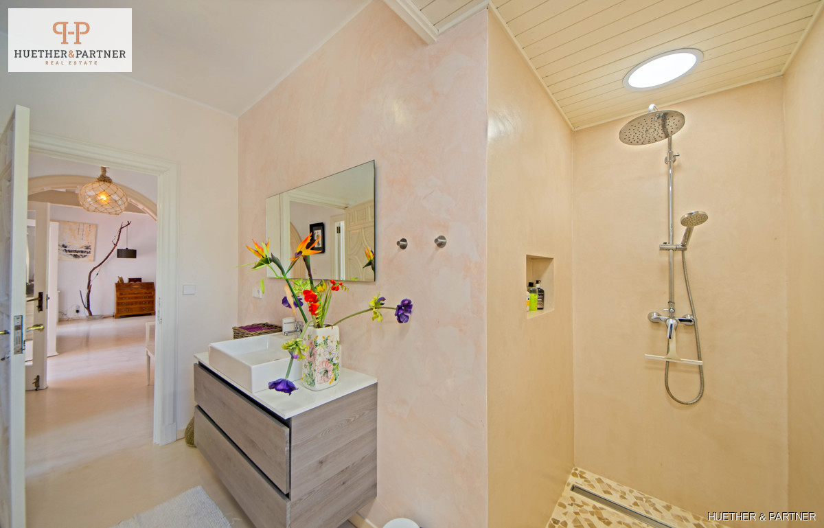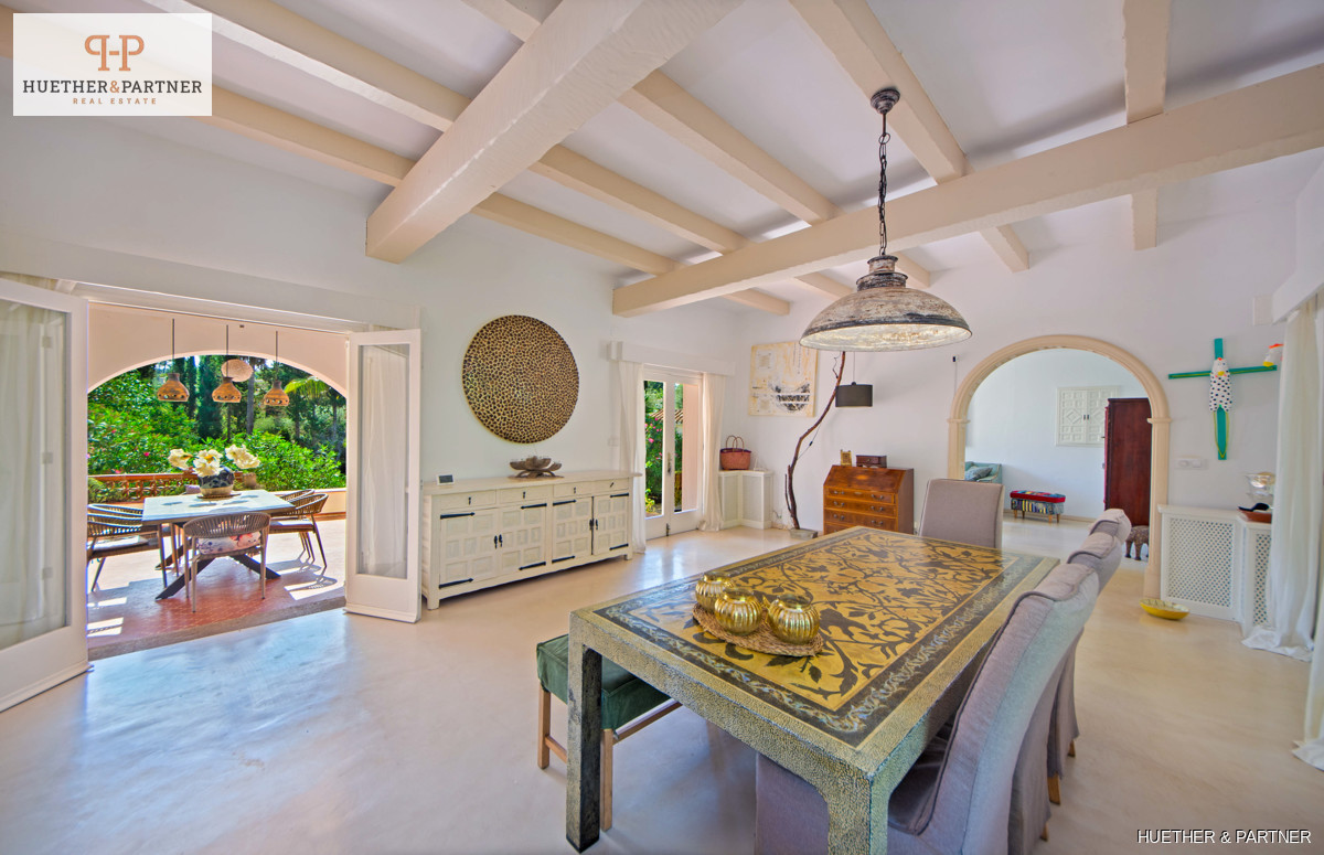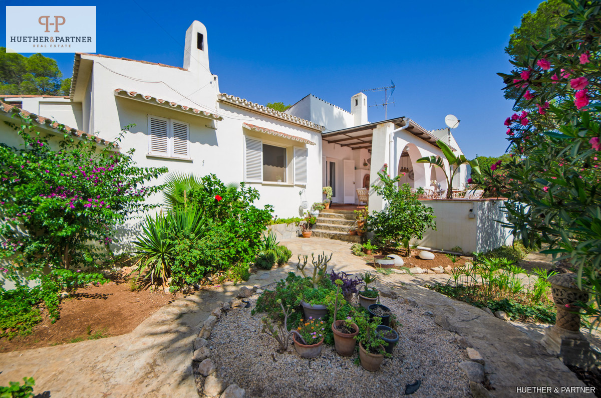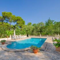 Dieses freistehende Chalet nahe der Bucht von Cala Murada bietet auf einem 3680 m² großen Grundstück absolute Privatsphäre. Das ebenerdige Haus verfügt über einen geräumigen Wohnbereich mit Kamin und mallorquinischen Schnitzereien, eine moderne, voll ausgestattete Küche und zwei Doppelschlafzimmer mit en suite Badezimmern. Der 48 m² große Pool mit Mosaiksteinen liegt neben dem Haus und bietet einen Blick ins Grüne des parkähnlichen Gartens.