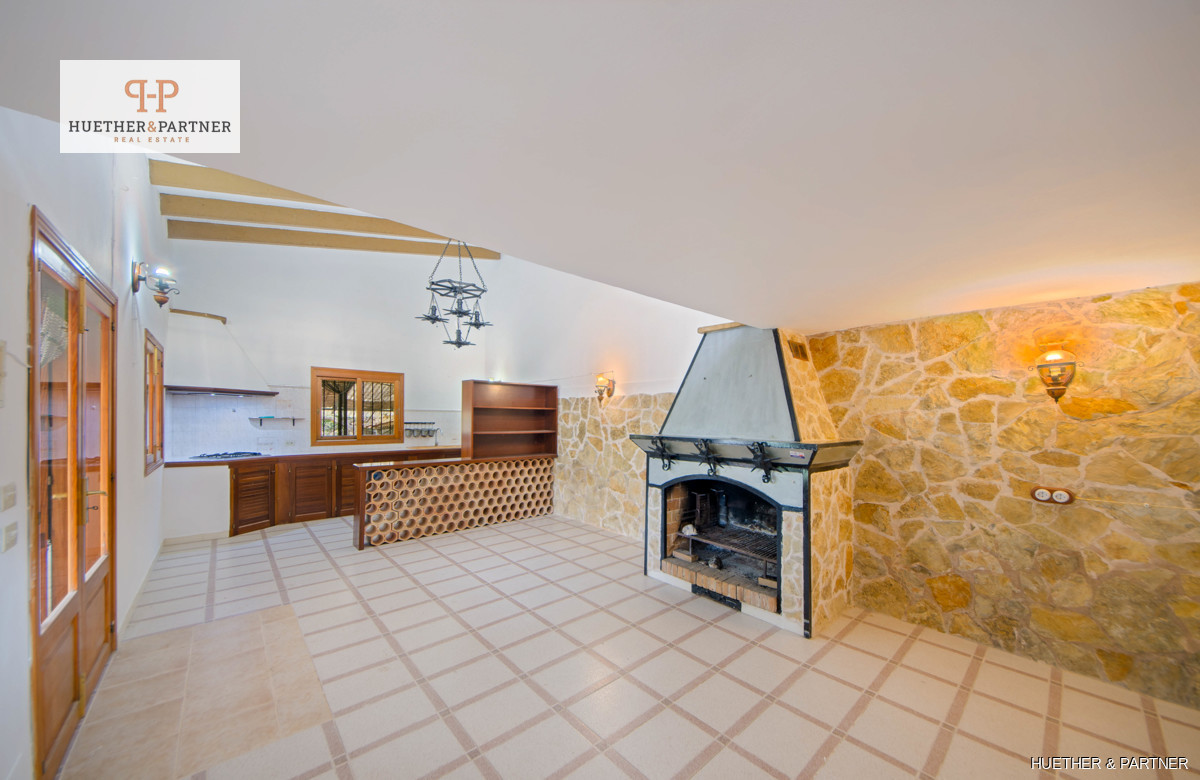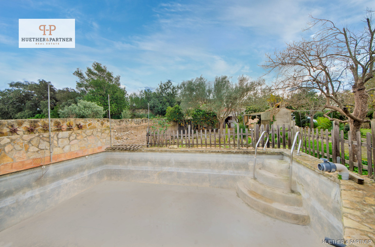Eine große überdachte Terrasse von 53 m² bietet zusätzlichen Außenbereich. Der Pool benötigt eine Reparatur, und es gibt einen großen Garten sowie ein weiteres Grundstück für landwirtschaftliche Zwecke. Verschiedene Nebengebäude mit 58 m² ergänzen das Anwesen. Ein funktionierendes Solarstromsystem ist installiert. Sanierungs- und Modernisierungsarbeiten sind nach behördlicher Genehmigung möglich, jedoch ist eine Vergrößerung des Gebäudes ausgeschlossen.